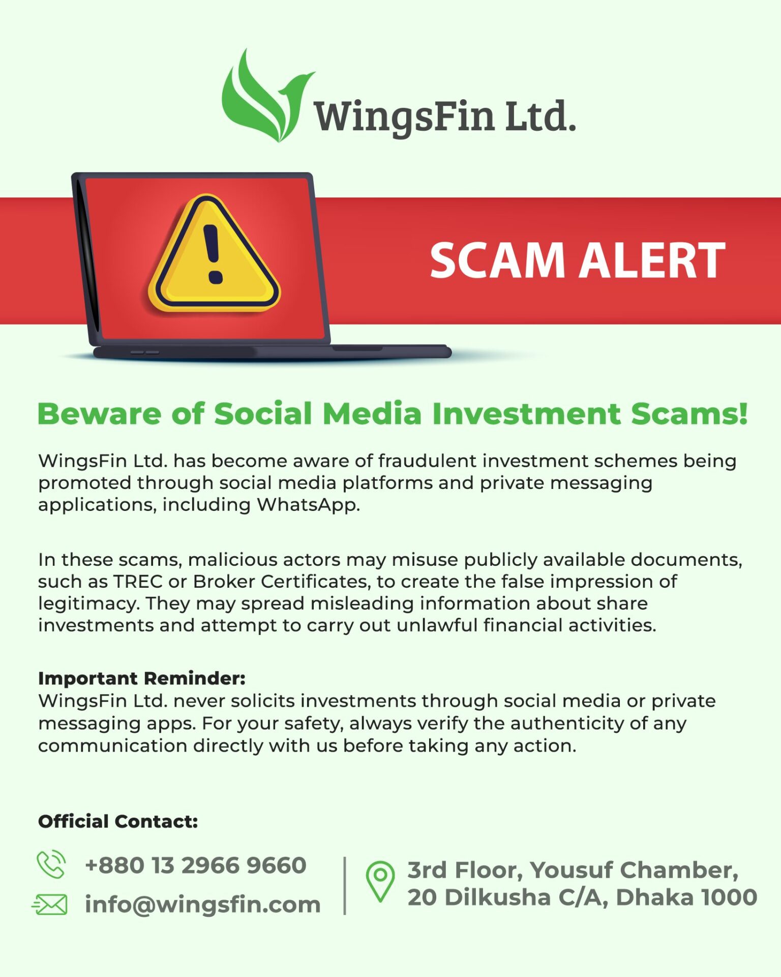 WingsFin Ltd. (WFL) is a TREC Holder company of the Dhaka Stock Exchange Ltd. (DSE), bearing TREC No. 299. The company is a full-service Depository Participant (DP) of the Central Depository Bangladesh Ltd. (CDBL). WFL, one of the most prominent brokerage houses in the country, was established in the year 2021. Within a short period of time, WFL placed itself among the league of state-of-the-art securities companies in Bangladesh. It is an innovative financial services company offering a range of brokerage and investment solutions in line with the company’s motto, “Investing for All.” WingsFin offers comprehensive global standard brokerage services for its retail, institutional, and foreign clients. Our highly experienced team is ready to provide the best services promptly and with due diligence. Our goal is to enhance value for our customers in a sustainable and comprehensive manner by providing value-added advice and personalized services.